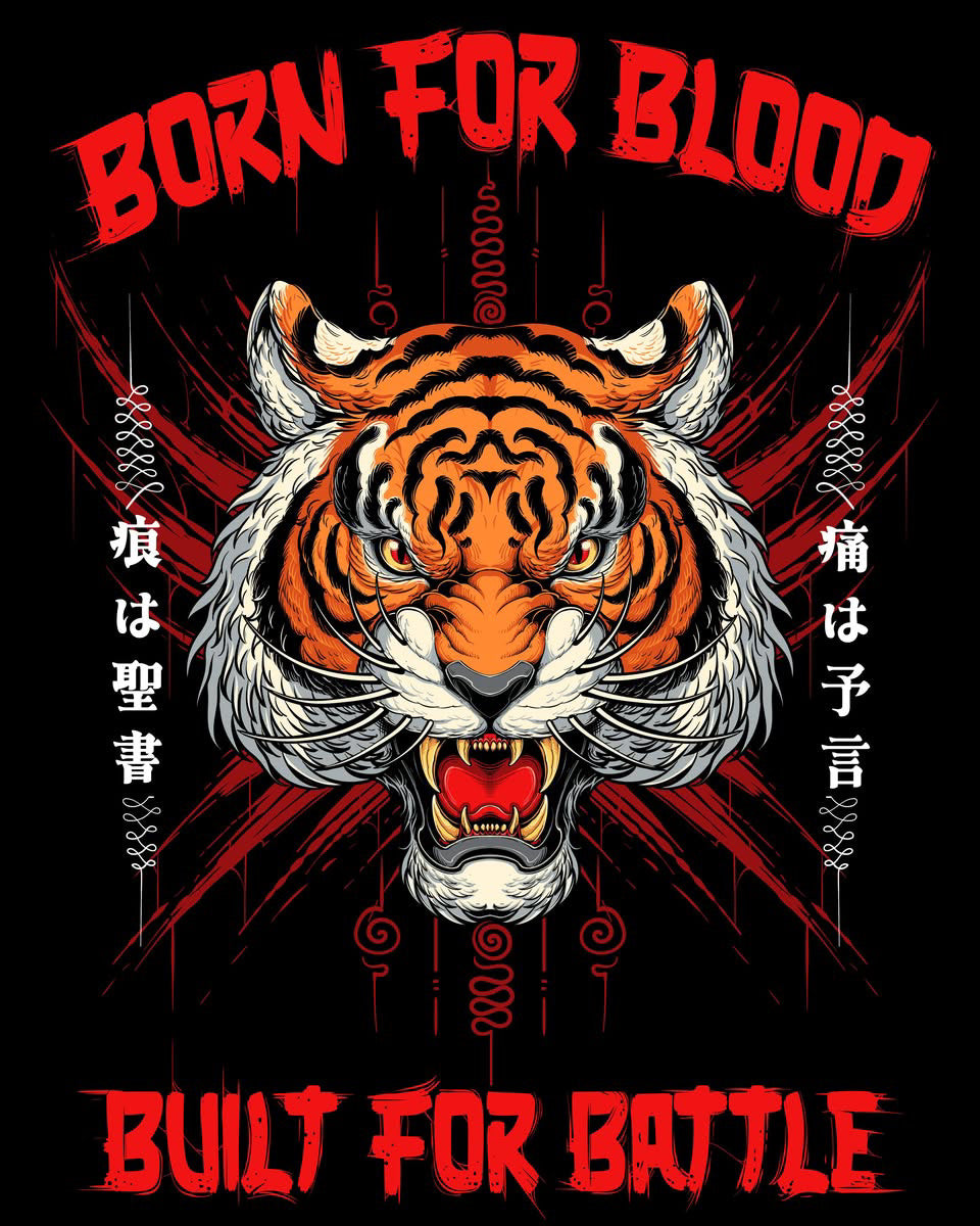 This design is a declaration for the savage few who embrace combat in all its forms — inside the gym, on the mats, or in life. The roaring tiger symbolizes relentless ferocity, standing as the eternal predator. Behind it, the Japanese kanji reads: