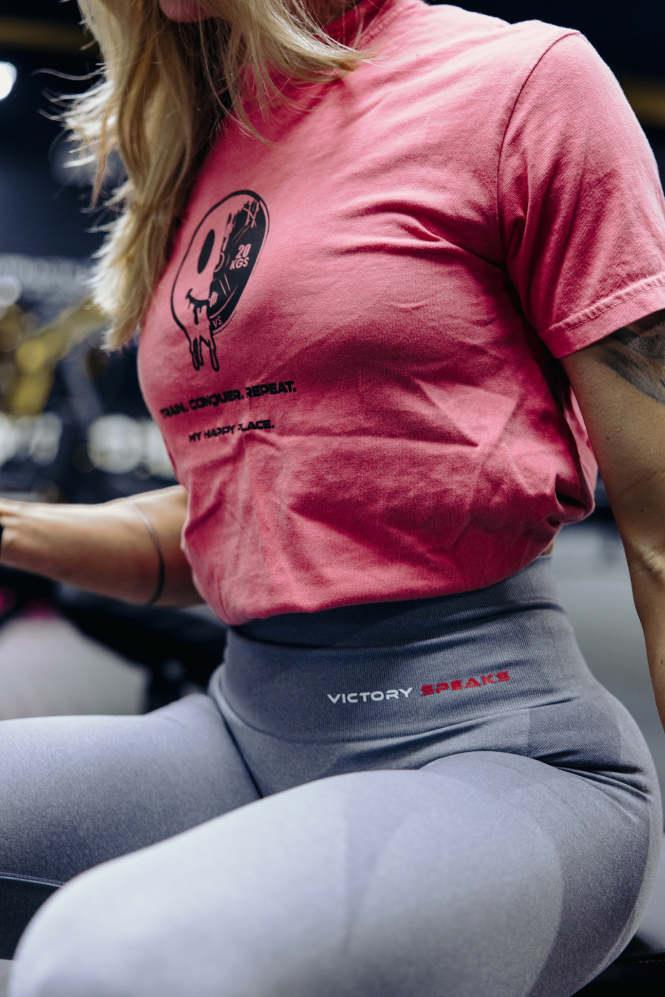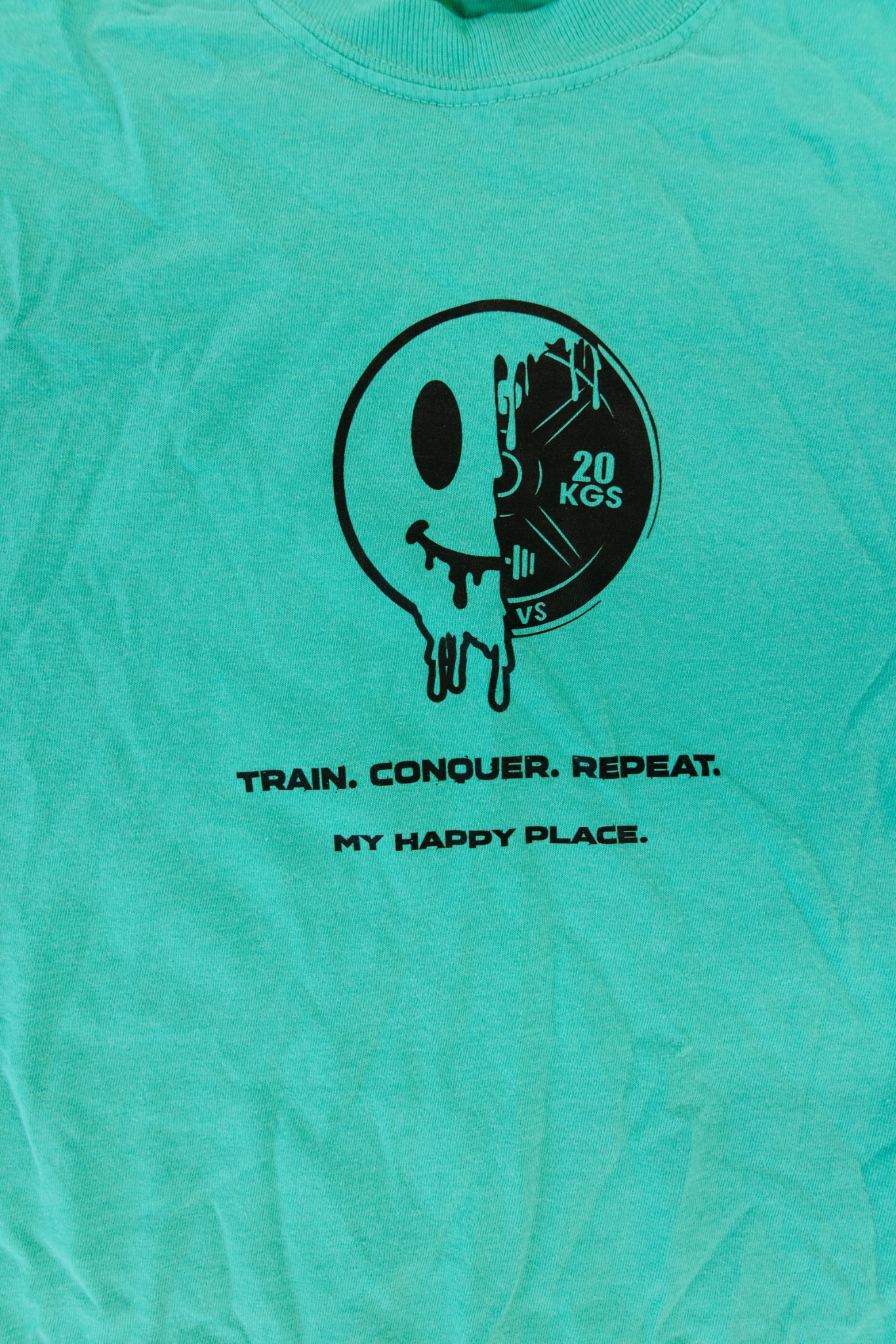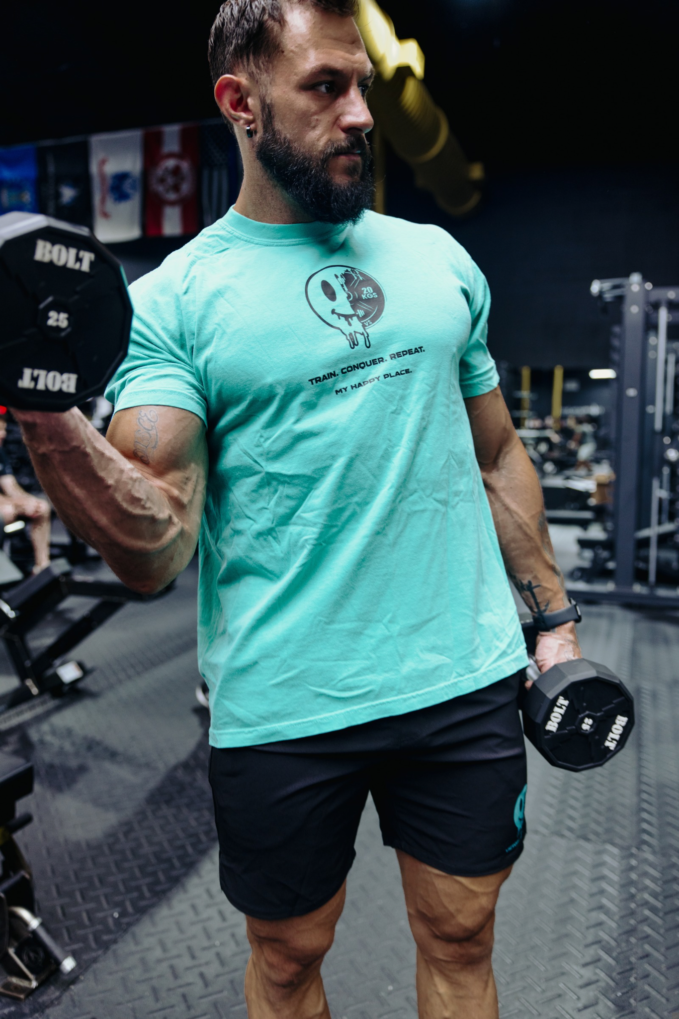 The HAPPY PLACE Tee is built for the ones who find peace in the grind — the warriors who feel more alive under iron than anywhere else.